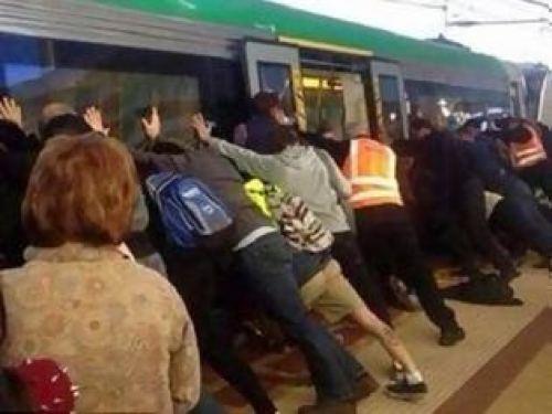 σταθμό να σηκώσουν όλοι μαζί τα τρένο για να απεγκλωβίσουν το πόδι του