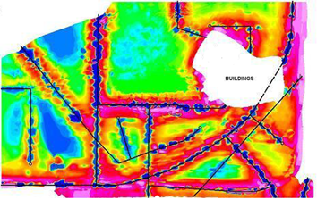 Στη πάνω φωτογραφία μπορείτε να δείτε πώς φαίνονται μεταλικοί αγωγοί στο έδαφος, μετά απο ανάλυση δεδομένων που προέρχονται απο μεταλικούς ανιχνευτές που διαθέτουν και GPS. Δέστε πόσο ξεκάθαρα φαίνονται οι λεπτομέρειες.