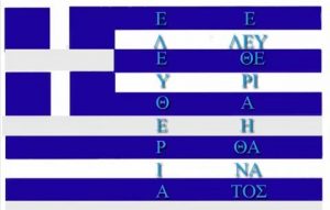 Κάποτε, οι κάτοικοι της χώρας που η γαλανόλευκη ήταν σύμβολο της, τη σεβόταν και στεκόταν προσοχή στο αντίκρυσμα της.Γνώριζαν πως οι γραμμές της μιλούσαν για την πιο σπουδαία και ιερή λέξη…την ΕΛΕΥΘΕΡΙΑ!!!
