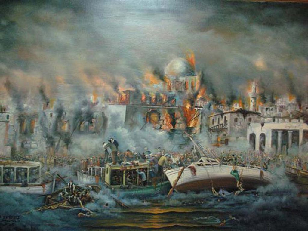 Άρπαξαν οι άνθρωποι βάρκες, καΐκια, σχεδίες, βαπόρια, πέρασαν τη θάλασσα σ’ έναν ομαδικό, φοβερό ξενιτεμό. Κοιμήθηκαν αποβραδίς νοικοκυραίοι στον τόπο τους και ξύπνησαν φυγάδες, θαλασσοπόροι, άστεγοι άποροι, αλήτες και ζητιάνοι στα λιμάνια του Πειραιά, της Σαλονίκης, της Καβάλας του Βόλου, της Πάτρας.